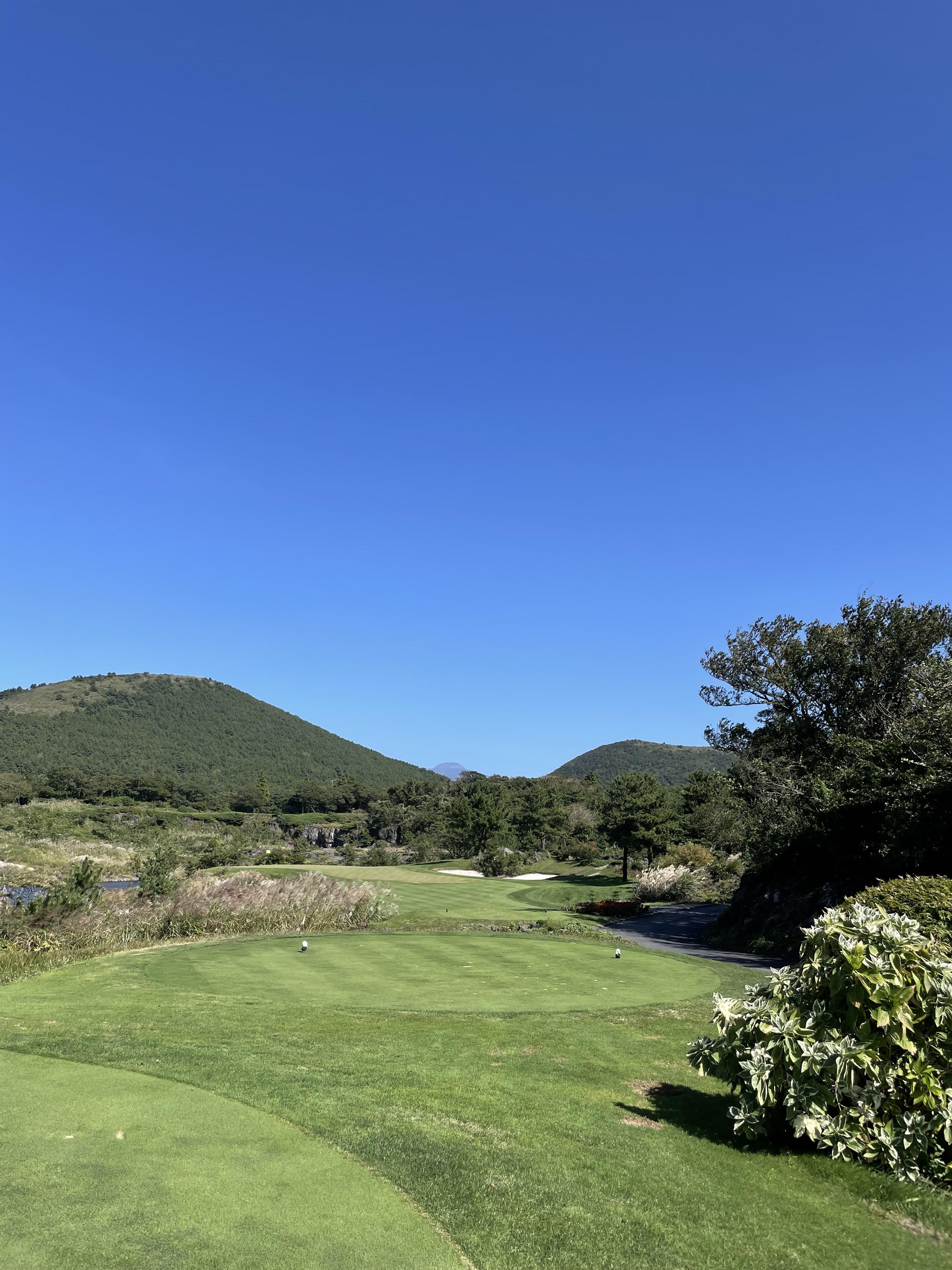 아늑하게 숲속에 둘러 싸여 있으면서 중간중간 계속해서 한라산과 오름들을 보며서 란딩을 즐길 수 있고 홀을 지날 때마다 풍광이 참 이쁘다는 느낌을 받게 된다.
