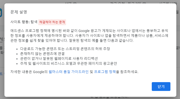 앱에 광고를 붙일 때 많이들 사용하는 구글 애드몹은 돈과 관련된 부분이라 그런지 투두날씨 서비스를 하면서 구글이 매우 예민하게 관리한다는 느낌을 받는다. 앱 런칭 초반 무심코 누른 광고에 무효 트래픽으로 제재를 받은 적이 있어서 조심하게 관리하고 있던 찰나, 불현듯 아래와 같은 문제가 있다는 메일을 받았다.