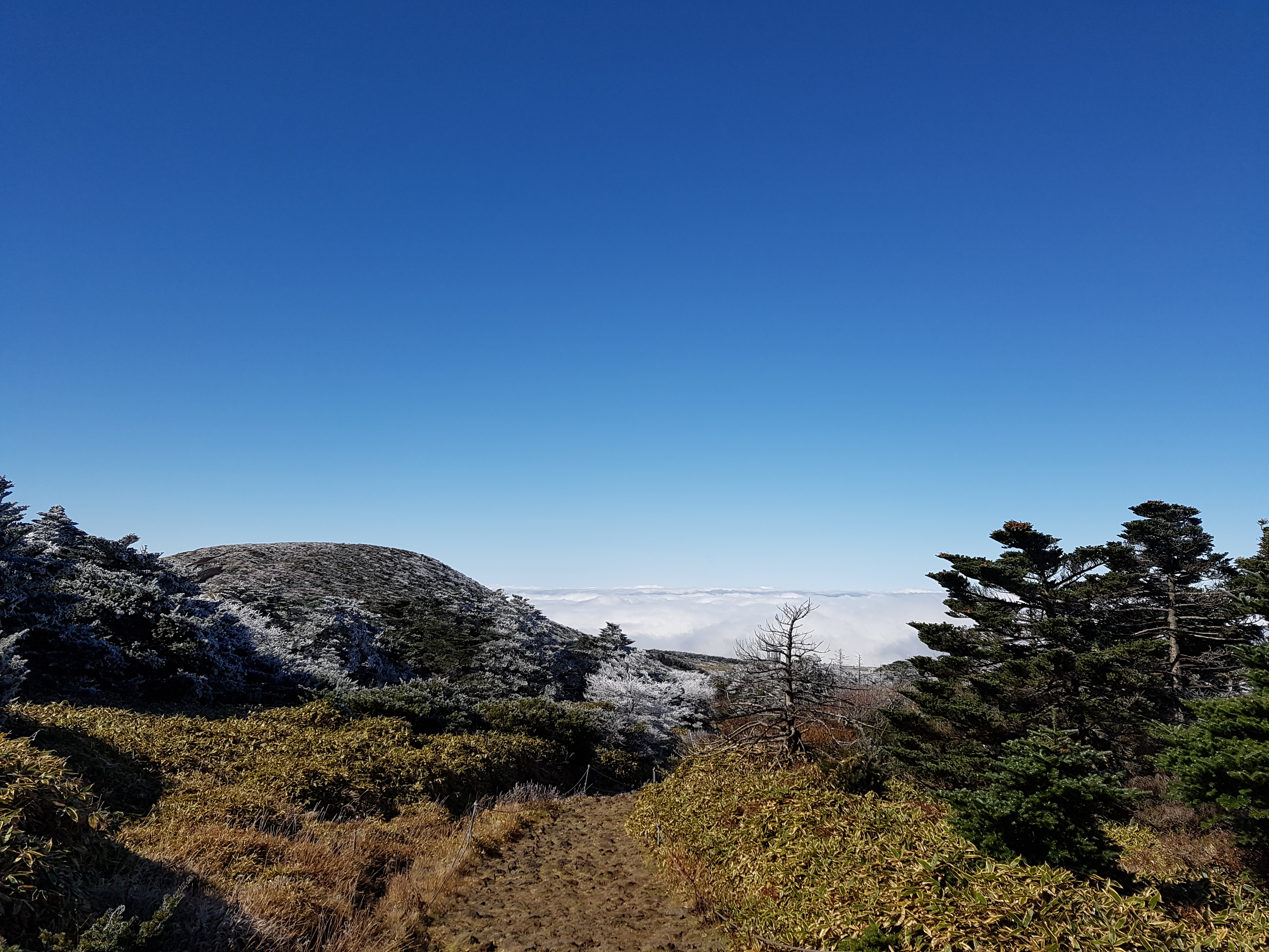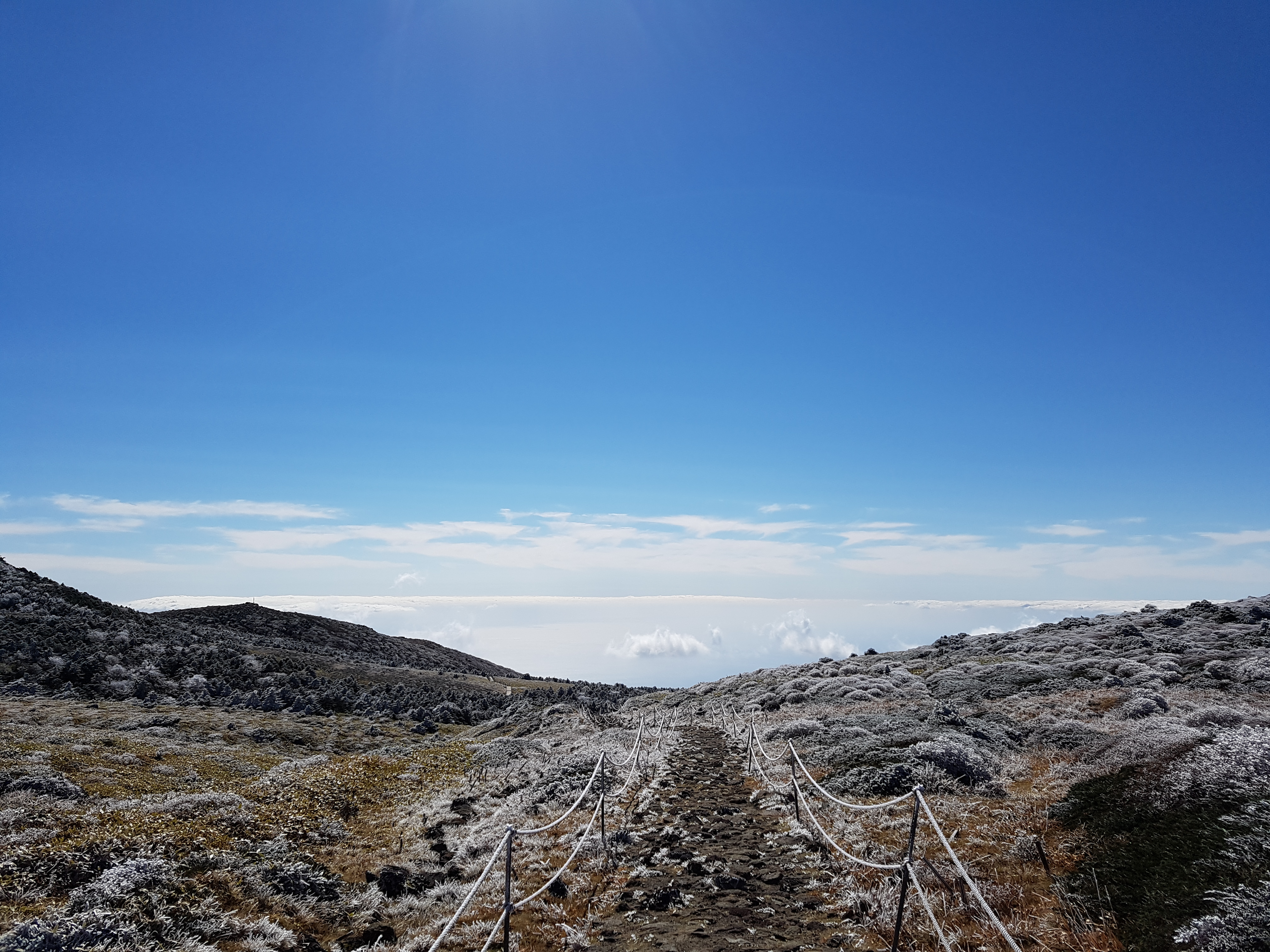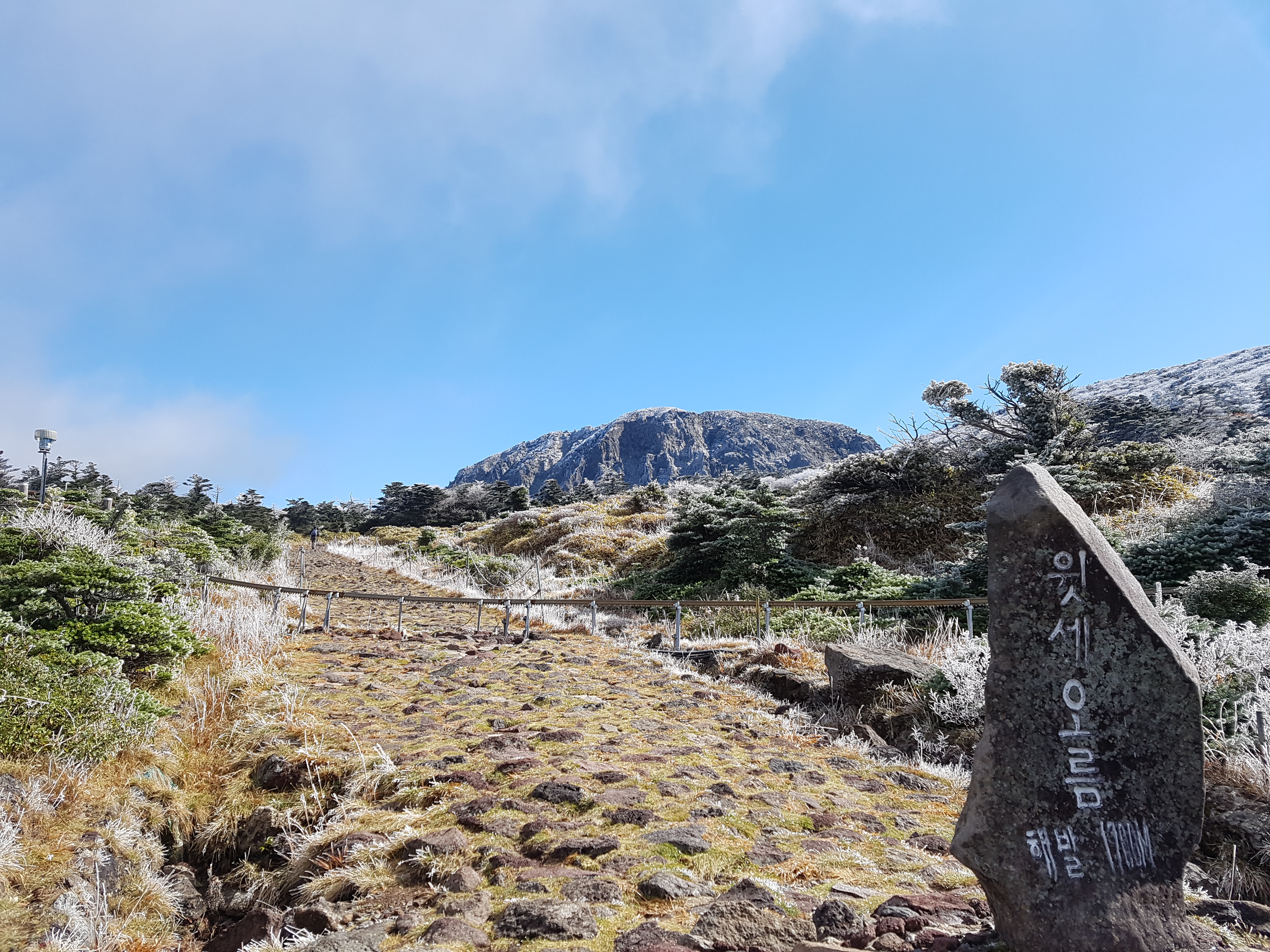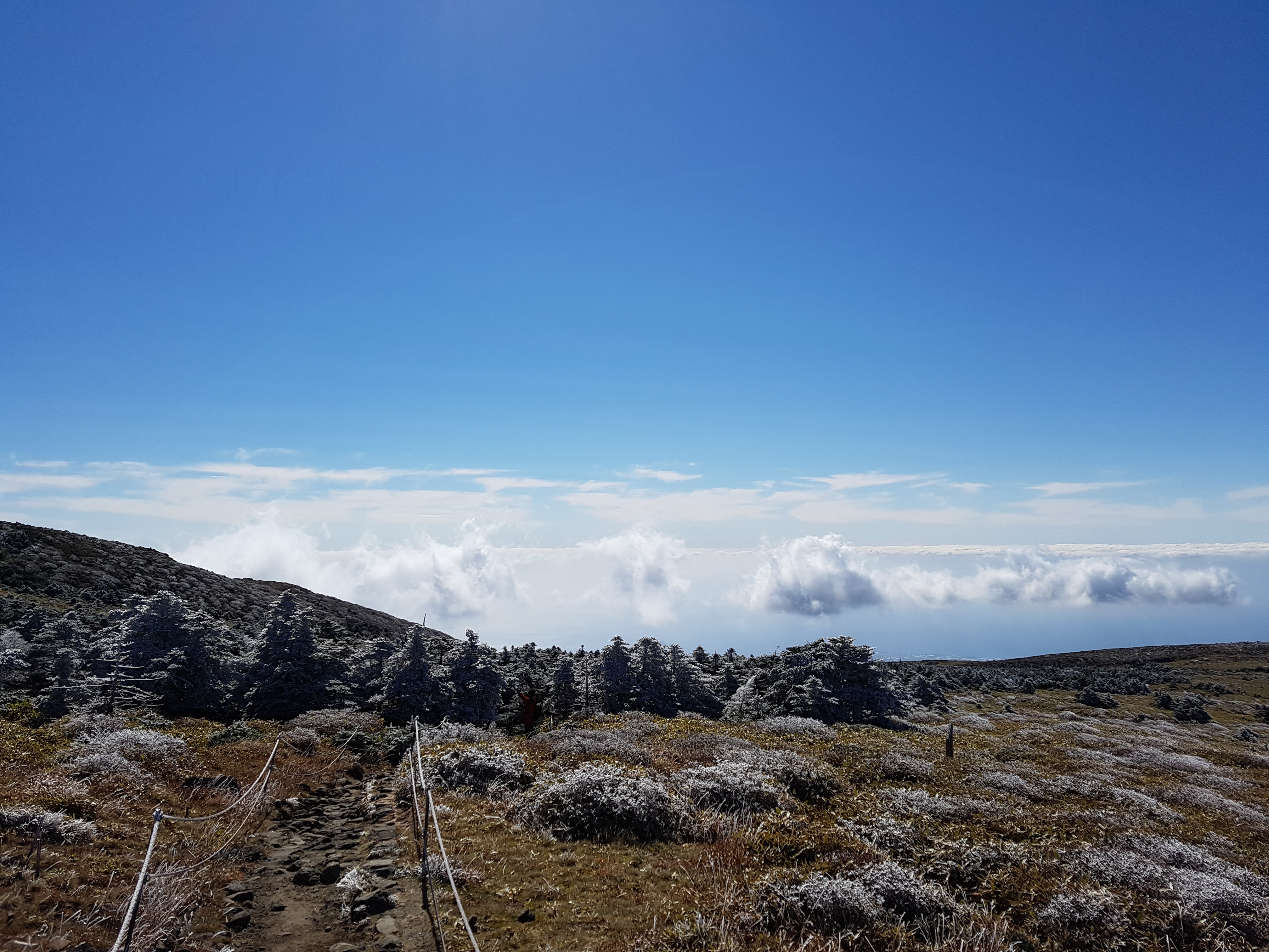이렇게 해서 영실코스를 따라 남벽분기점까지 탐방을 마쳤는데 코스 초반에는 높고 많은 계단을 타느라 힘들었지만 그 계단만 넘으면 너무나 알흠다운 눈꽃 설원 풍경을 마주할 수 있고 날씨만 받쳐준다면 윗세오름부터 남벽 분기점까지의 길을 정말로 탁월한 전망과 신선놀음하는 것 같은 상쾌함을 던져준다. 글을 쓰는 지금은 6월 여름인데 날이 점점 더워져서 영실 코스를 오르던 11월, 그 곳에서의 춥고 선선한 기분이 그리워 11월의 영실코스 길을 이제서야 남긴다. 아직 안 가 본 분이 있다면 강추!