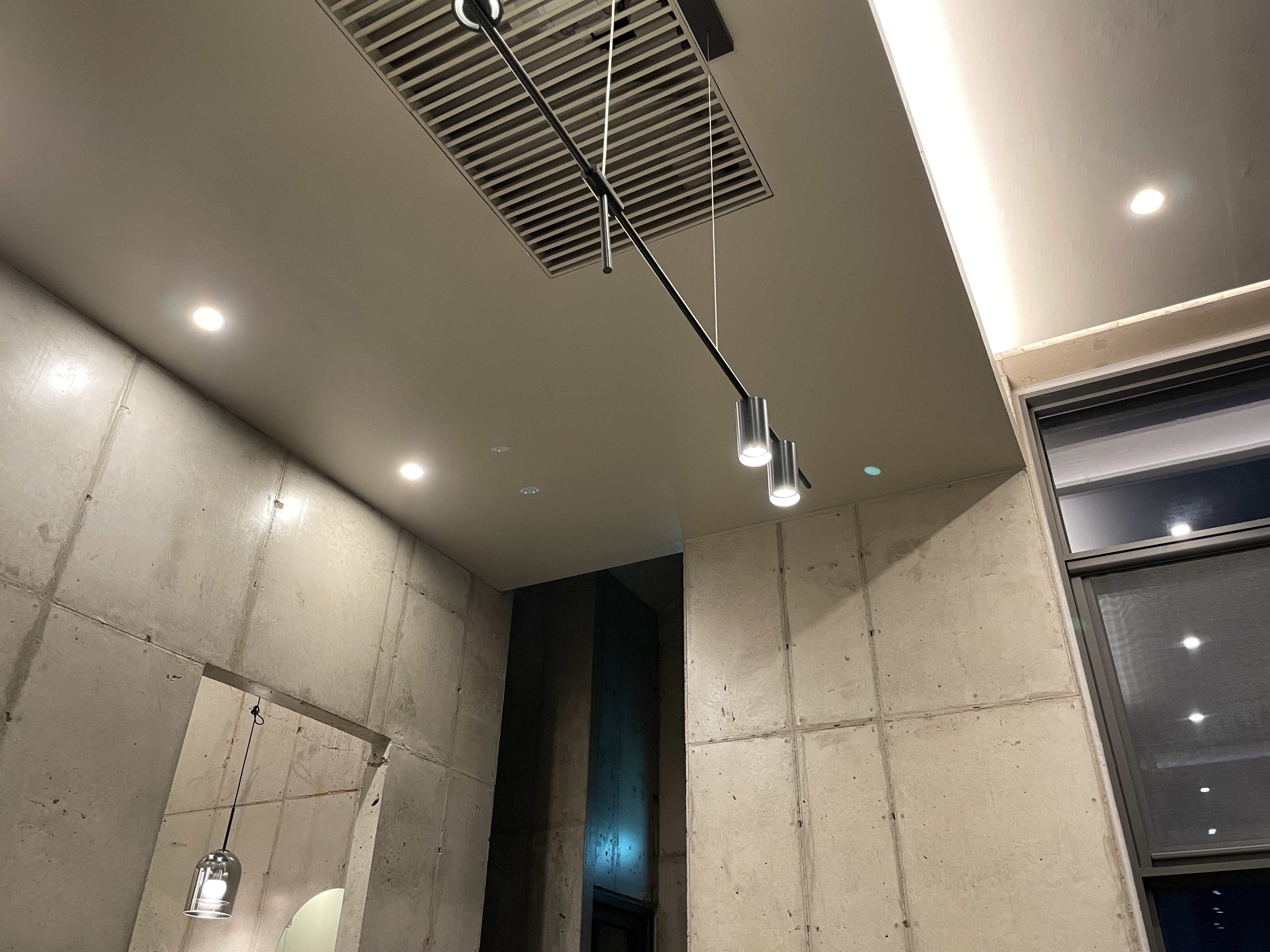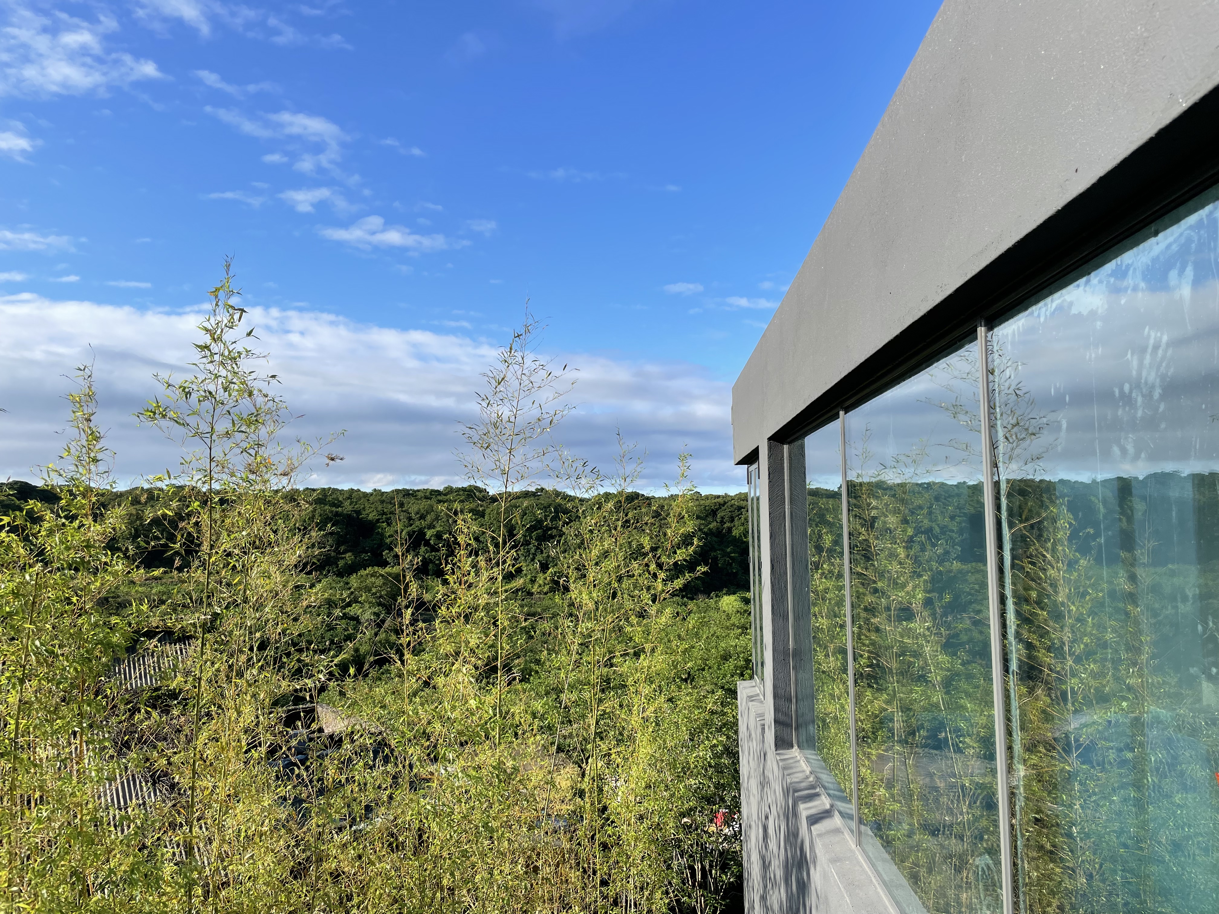 실내는 모던하고 심플하다. 높은 층고로 실내에서도 개방감을 느낄 수 있고 통창으로 둘러쳐 있기 때문에 실내에서도 오름 정원과 멀리 보이는 곶자왈을 바라볼 수 있다.