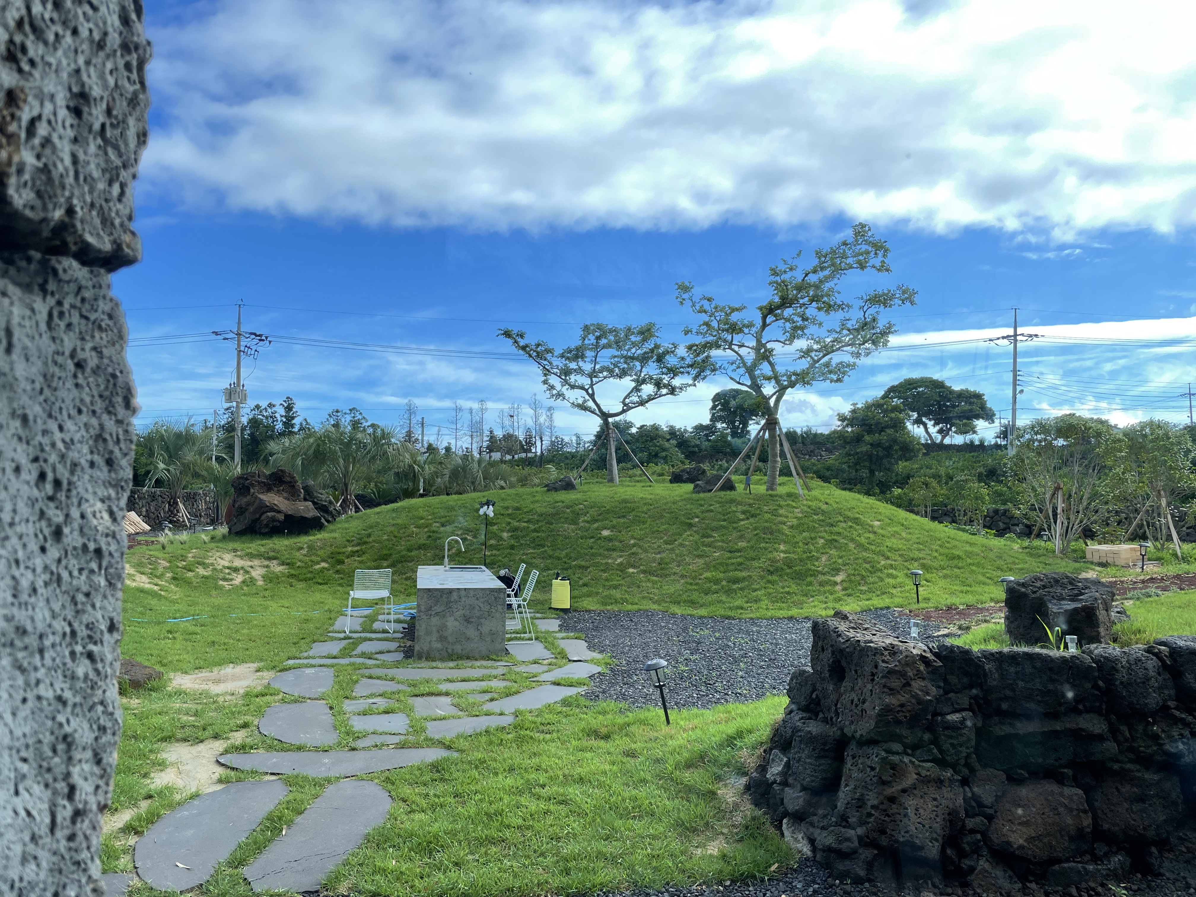 건물 들어오는 중간 길에 오름 같은 정원이 있고 그 옆에 야외 테이블이 있다. 테이블을 보니 인덕션이 있었다. 오! 이렇게 야외에도 인덕션을 배치해둘 수 있구나!