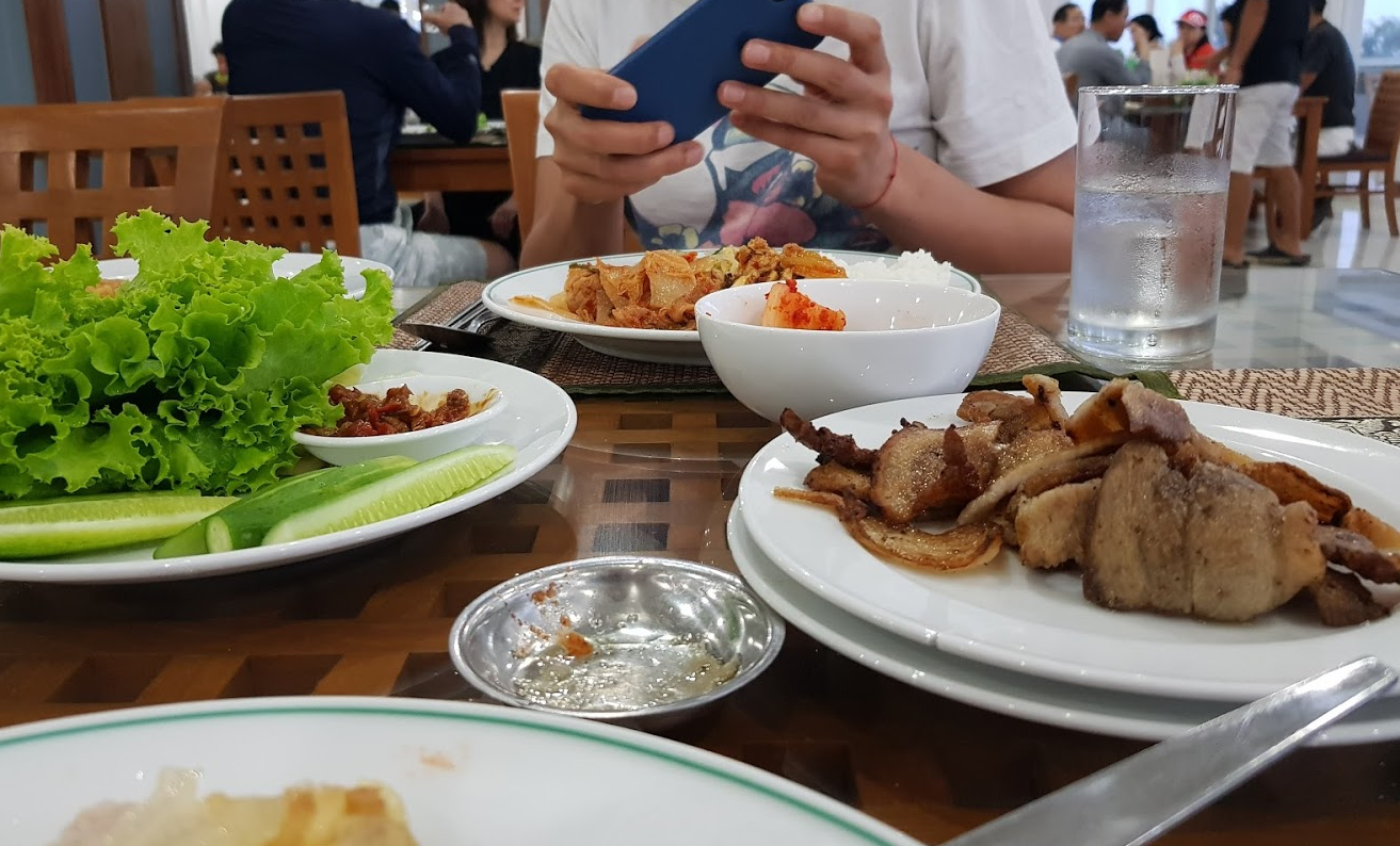 뜨끈한 날 잘 관리된 잔디를 밟으며 재밌는 코스를 한번 돌고 오면 허기지기 마련. 패키지 상품에 식사도 포함이었는데 고급 레스토랑 모 이런 건 아니었지만 한식 위주로 뷔페식으로 아점저를 한번에 해결할 수 있고 맛도 괜찮았다. 메인 메뉴가 매일 바뀌었지만 주말에는 특별히 삼겹살 무제한 파티를 해준다. 삼겹살 하면 소주가 빠질 수 없으니 현지에서 무려 12,000원짜리 소주 한병을 땄다.