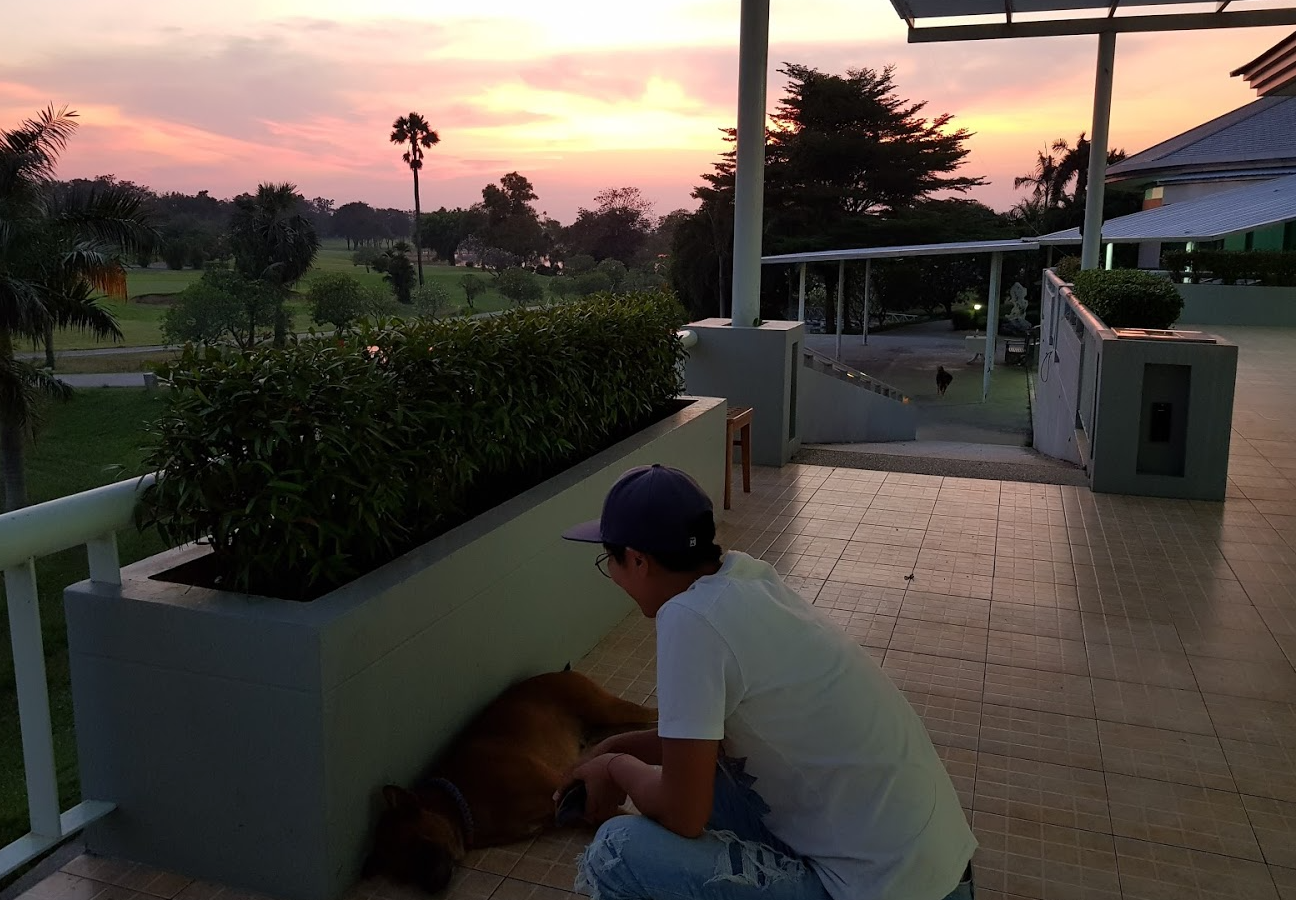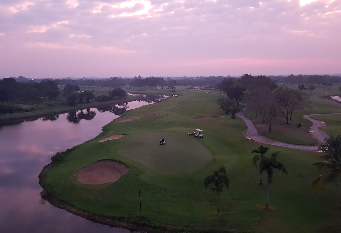 유니랜드cc 는 태국 방콕 수완나폼 공항에서 차로 약 1시간 30분 정도 소요되는 곳에 있다. 밤 비행기를 타고 와서 완전 시내를 제외하고는 차가 거의 밀리지도 않았으니 공항에서 거리는 좀 있는 편. 이동하는 차에서 한 숨 자는 걸 추천한다. 도착했을 시에는 워낙 어두컴컴한 밤이었는데 다음 날 아침 새소리에 깨어 보니 골프텔 테라스 바로 앞에 아래와 같이 시원하게 골프장 뷰가 펼쳐진다. 이제서야 태국에 골프 치러 온 게 실감이 난다.