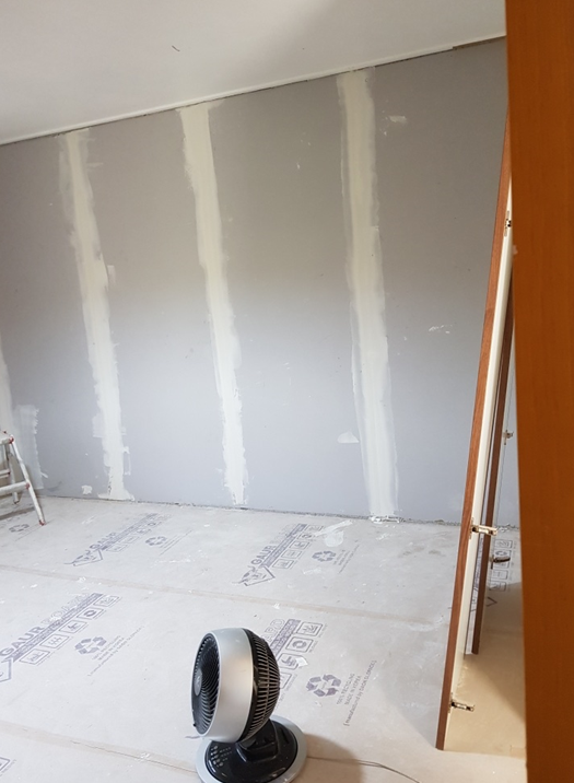 내벽 청소, 방수제 발포, 아이소핑크 취부, 석고보드 취부까지 완료. 이제 남은 건 꿈의 소재 (= 비싸다) 에어로겔 페인트로 마감을 하면 된다!