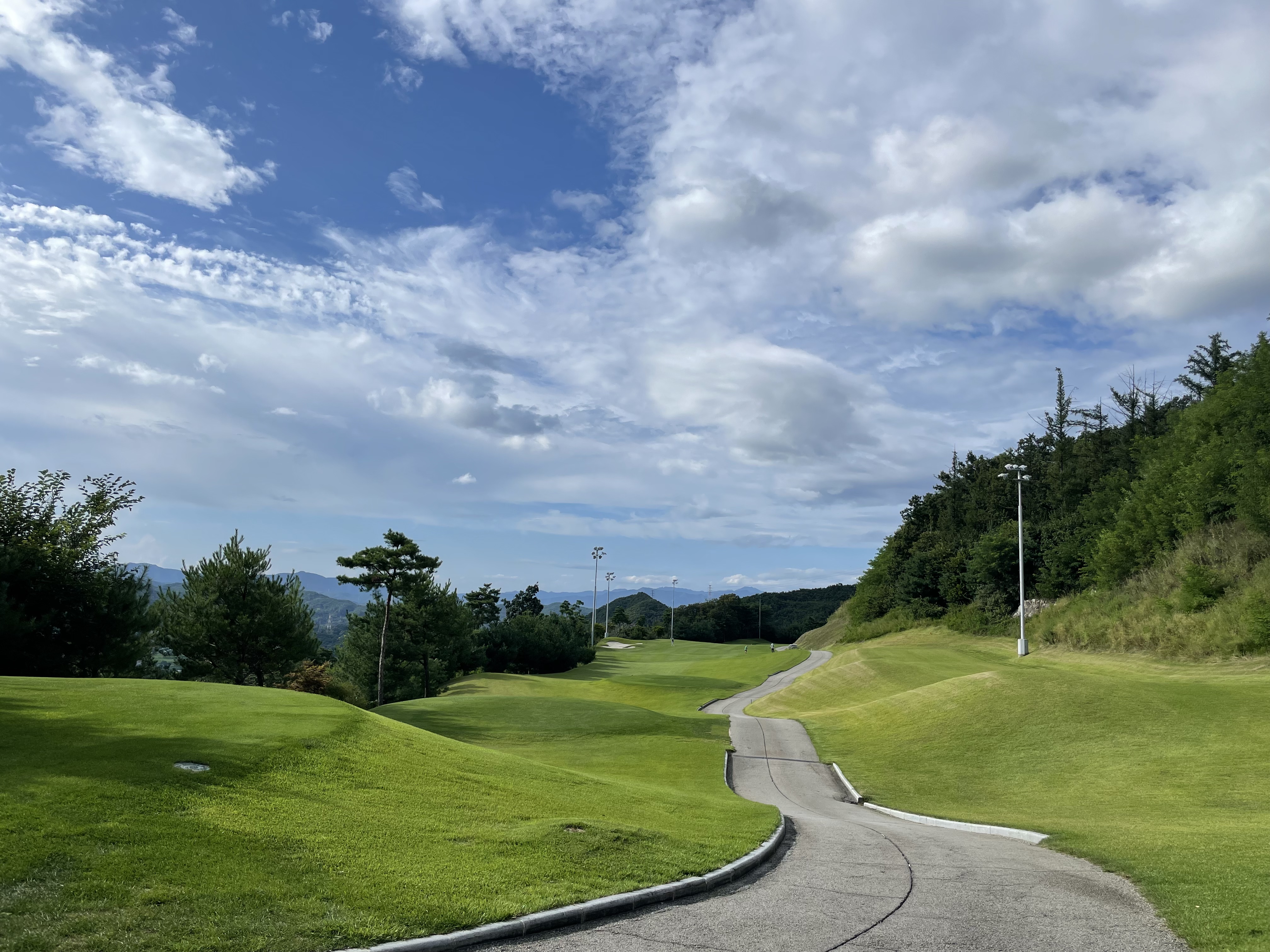 전반 코스가 캐슬 코스였는데 첫 홀 티박스에서 페어웨이를 바라보니 퍼블릭이지만 관리를 하는 퍼블릭 골프장이라는 느낌을 단번에 받을 수 있었다. 코스도 억지로 산 중턱을 구겨서 만든 것 같지 않고 설계가 들어간 느낌!