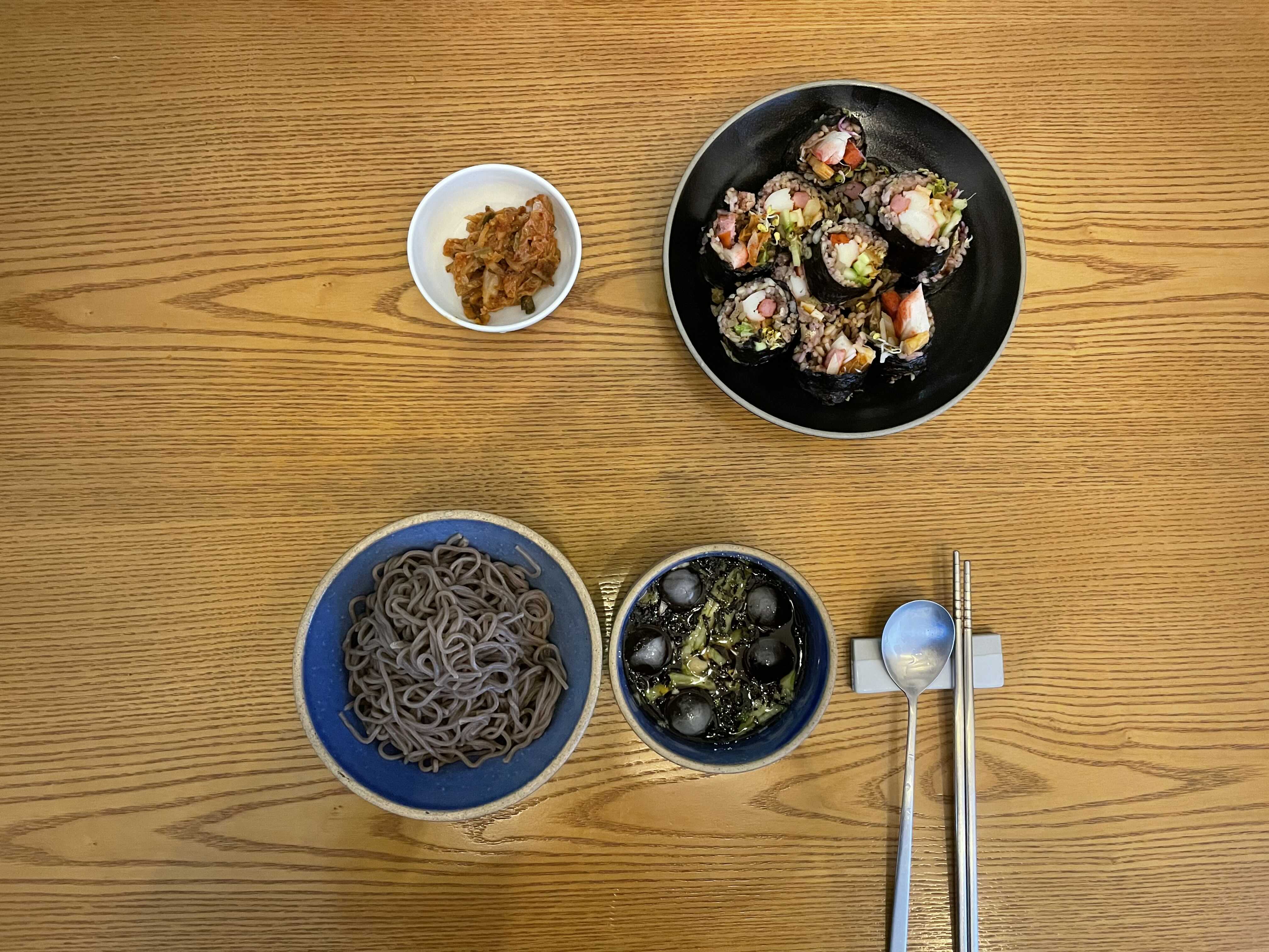 김밥 (잡곡밥 계란 햄 오이 마른김)