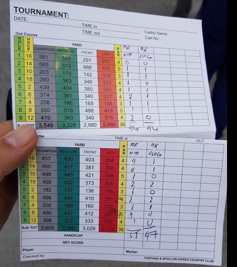 그럼에도 불구하고 스코어는 망. 한국 골프장 다니다 해외로 나오면 전장 거리에서 차이를 느끼게 되는데 화이트 티 기준으로 한국보다 해외 골프장들의 전장이 대체적으로 길게 세팅되어 있는 것을 체감한다.
