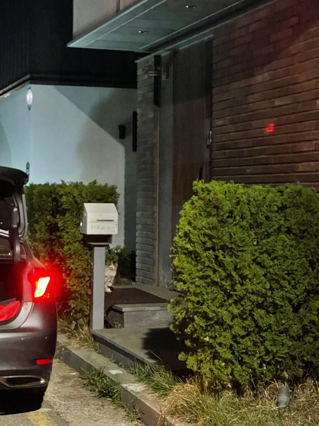판교동 주민은 냥이들에게 관대하다. 돌아다녀보면 집 앞에 냥이들을 위한 밥그릇과 물그릇이 놓여 있는 것을 심심치 않게 볼 수 있다. 처음에는 냥이들이 동네를 자유롭게 활보하며 놀러다니고 배가 고파지면 이집 저집에 있는 밥으로 끼니를 떼울 거라 생각했는데 오래 관찰해보니 냥이들간에도 소위 나와바리라는 게 존재하는 것 같다. 판교 열병합 발전소 근처 공원과 이어지는 육교 앞에는 늘 퉁퉁한 검은 고양이가 앉아 있는데 이 냥이는 와이프가 우쭈쭈~ 하면서 끌고 오면 어느 정도 따라오다가 꼭 특정 블록에서 멈춘다.