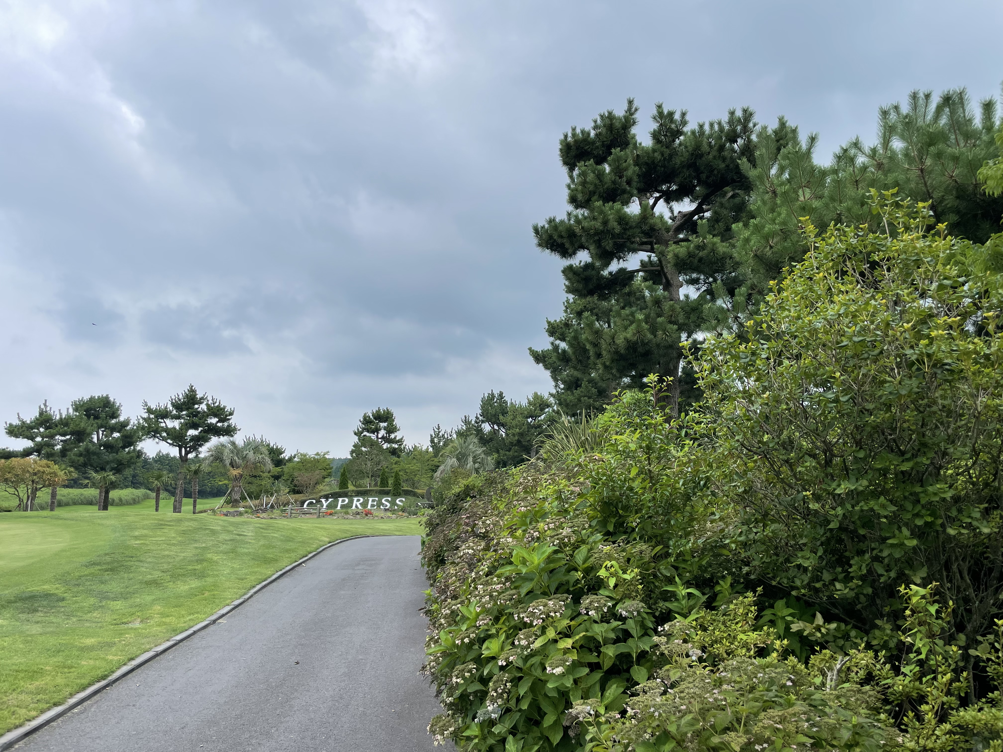 제주 서쪽에 살고 주로 서쪽에 있는 구장을 다니는지라 동쪽에 있는 구장은 해비치와 에코랜드 외에는 가 본적이 없는 것 같다. 해비치는 넓고 쭉쭉 뻗은 긴 페어웨이가 특징이고 에코랜드는 원시림 느낌과 수많은 워터 해저드를 공략해야 하는 또다른 매력의 동쪽 구장이었는데 지인 찬스로 와 본 사이프러스cc 는 환경적인 부분은 에코랜드, 코스 설계는 전장이 짧은 해비치 느낌이었다.