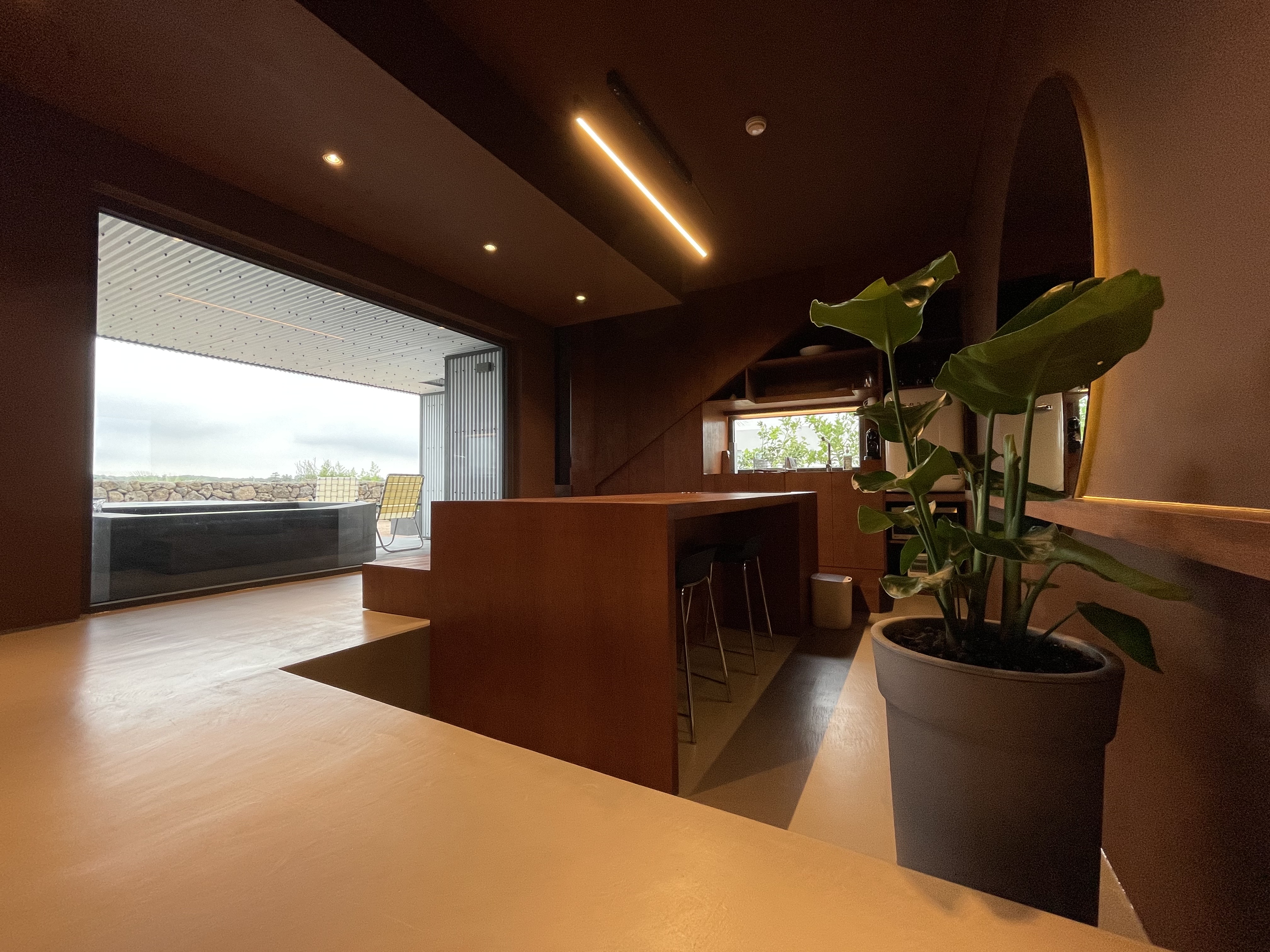 1층에서 작은 문을 열고 나가면 바로 사이즈가 좀 되는 야외 자쿠지를 마주할 수 있고 큰 통창을 통해서 서로 교감할 수 있다.