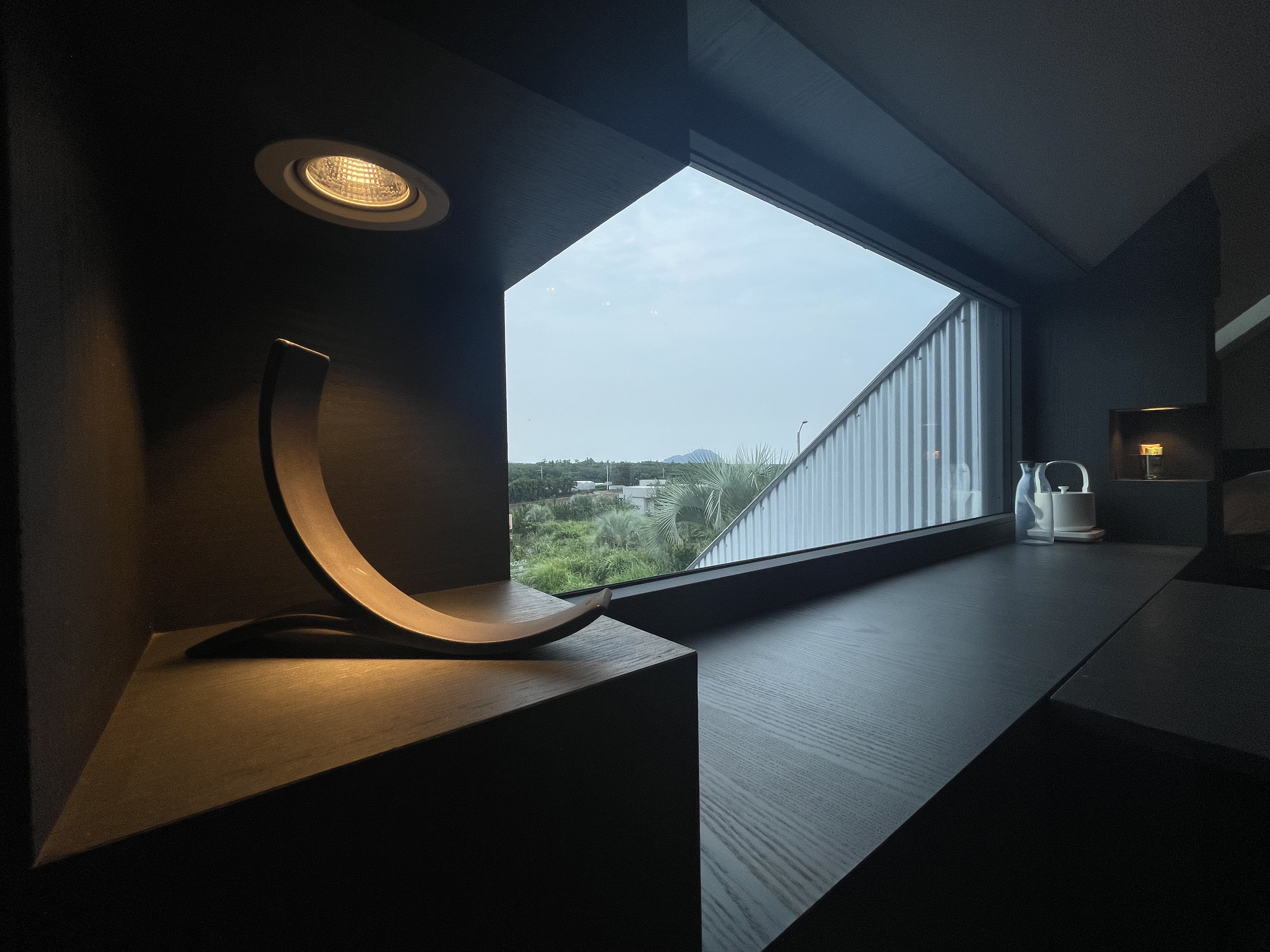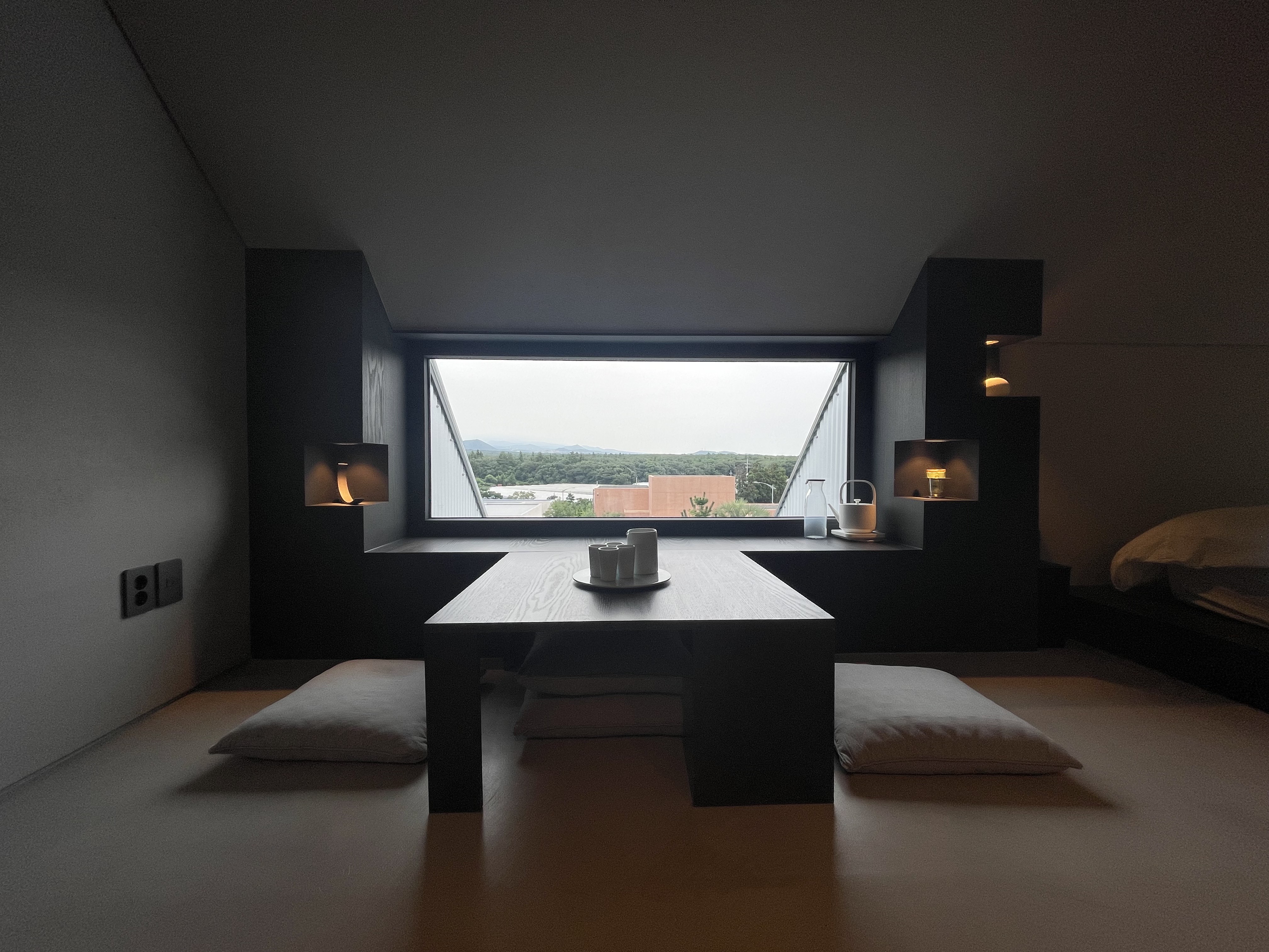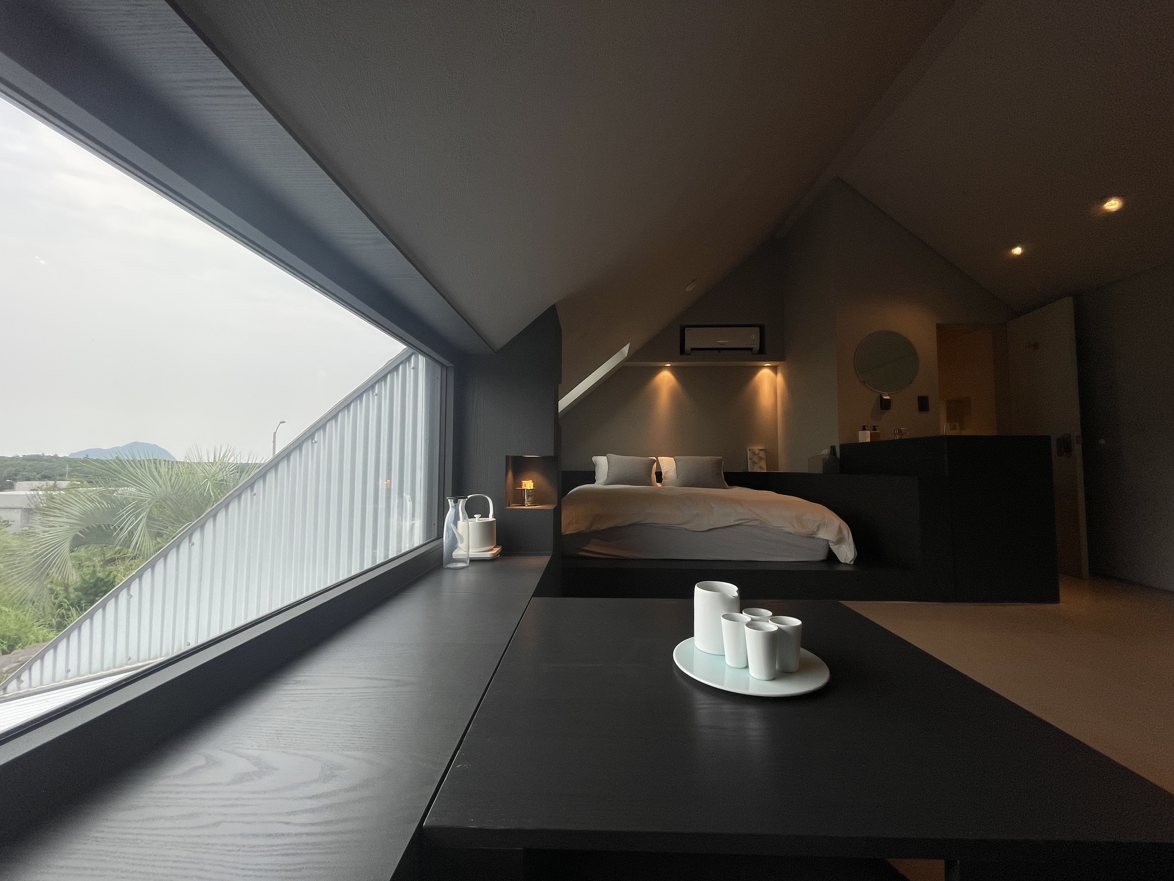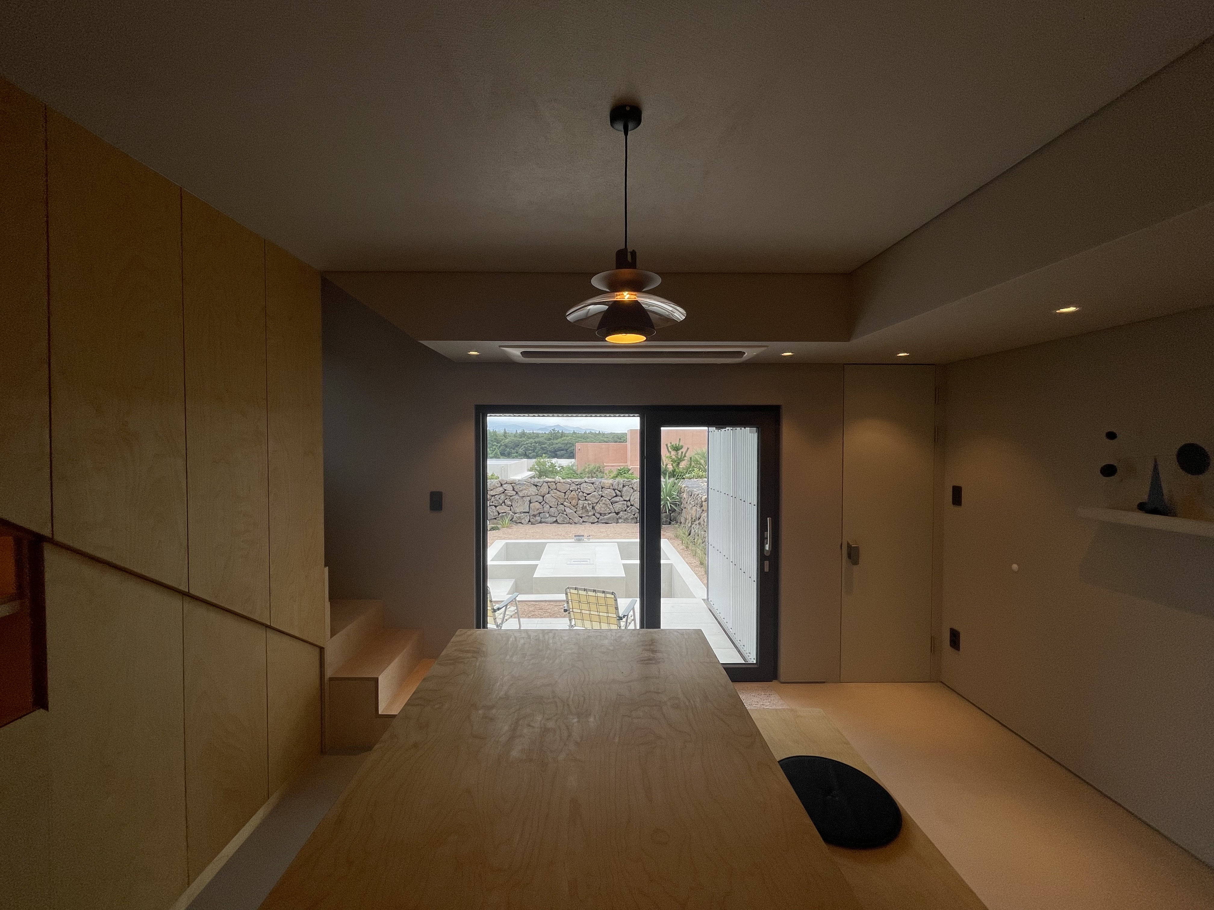 2층으로 올라가면 메인 침실이 있는데 'ㅍ'은 밝은 브라운톤의 퀄커스라면 'ㄹ'은 1층과 대비되게 검은 퀄커스로 가구를 짰다. 'ㅍ' 은 침대 가구에서 앉아서 마주보면서 곶자왈과 한라산을 볼 수 있는 공간이 있다면 'ㄹ'은 누워서는 하늘을 볼 수 있고 티테이블이 있는 곳으로 움직이면 녹색 풍경을 보면서 오붓하게 차를 마실 수 있다. 컵, 쟁반등의 도자기는 떠오르는 도예가 동생들의 브랜드 '여백' 의 것들로 준비했다.