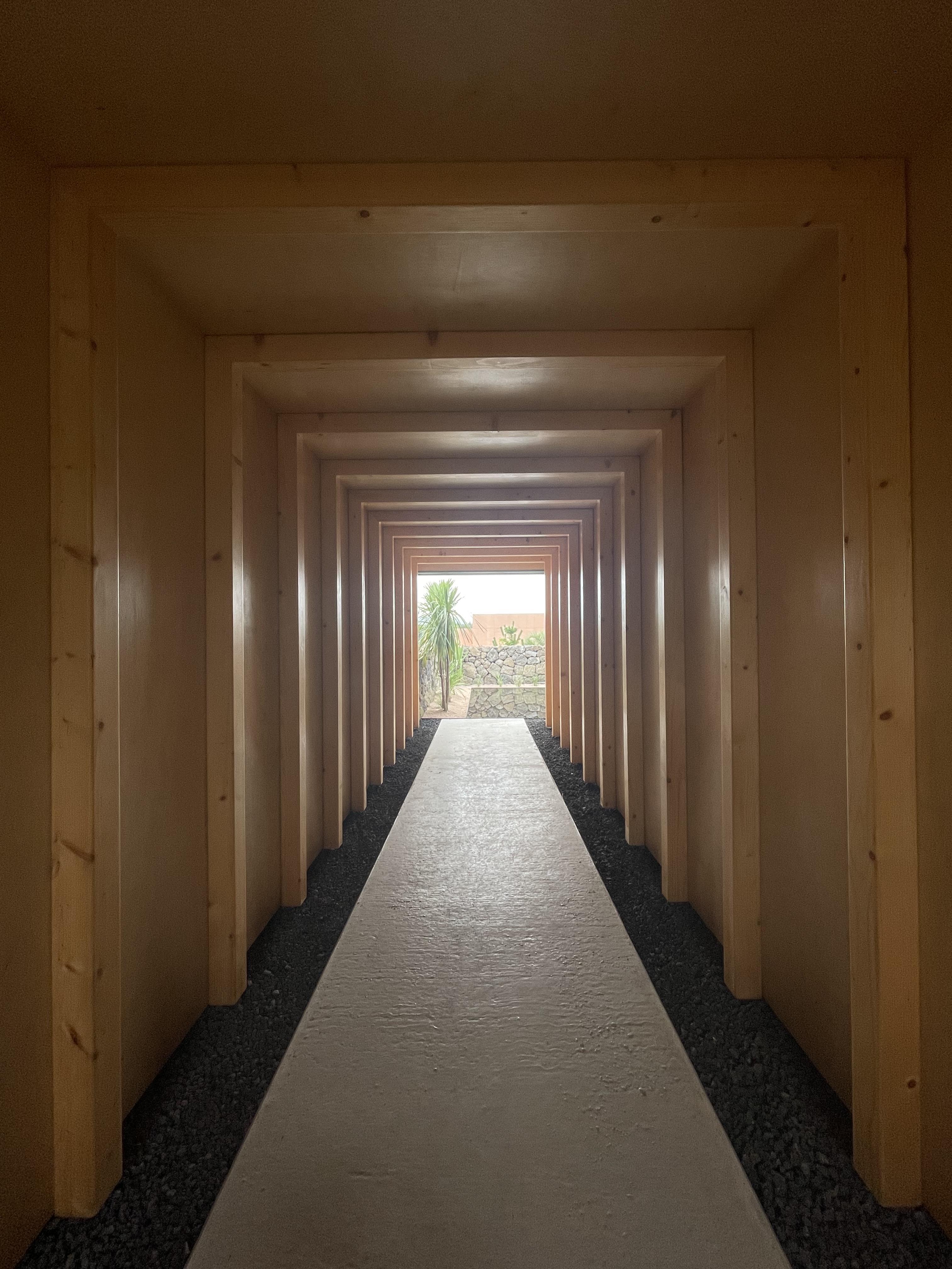 펠롱여관의 객실은 자작나무로 만든 통로를 통해 이어진다. 'ㅍ' 을 지나면 'ㄹ' 을 만날 수 있다.